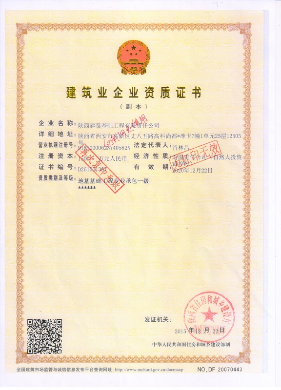 版权所有 陕西建秦基础工程有限责任公司 陕ICP备15002949号 地址:陕西省西安市高新区丈八五路高科尚都*摩卡7幢1单元25层12505号  电话:029-85213232 传真:029-85213232